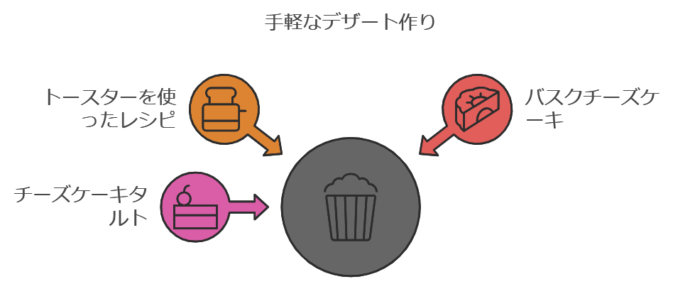 また、トースターを使ったレシピも魅力的です。しっとり濃厚なバスクチーズケーキや、オーブン不要で手軽に作れるチーズケーキタルトなど、トースターを使ったスイーツは、手間をかけずに美味しいおやつを楽しむことができます。これらのレシピは、特別な道具を使わずに、家庭で簡単に作れるため、忙しい日常の中でもスイーツ作りを楽しむことができます。