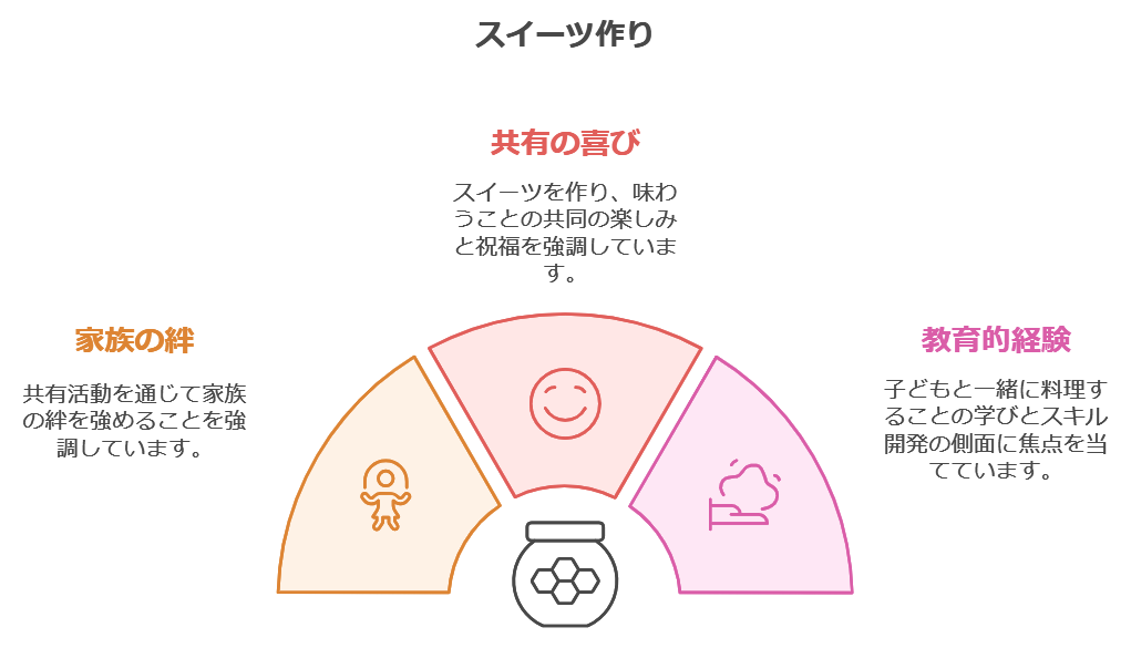 また、スイーツ作りは、ただ美味しいものを作るだけでなく、家族や友人と一緒に楽しむことができる素晴らしいアクティビティです。特に、子どもと一緒に作ることで、料理の楽しさや達成感を共有することができ、親子の絆を深める良い機会にもなります。さらに、完成したスイーツをみんなで味わうことで、喜びを分かち合うことができるのです。