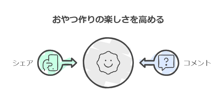 また、SNSでのシェアを促すためのハッシュタグも提案されており、作ったおやつを共有する楽しさが広がっています。