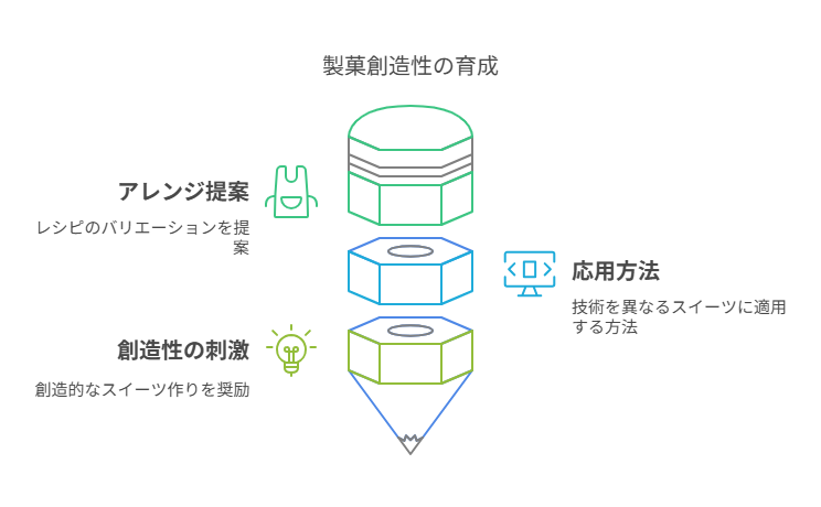 本書では、スイーツ作りを通じて応用力を育むための工夫がされています。